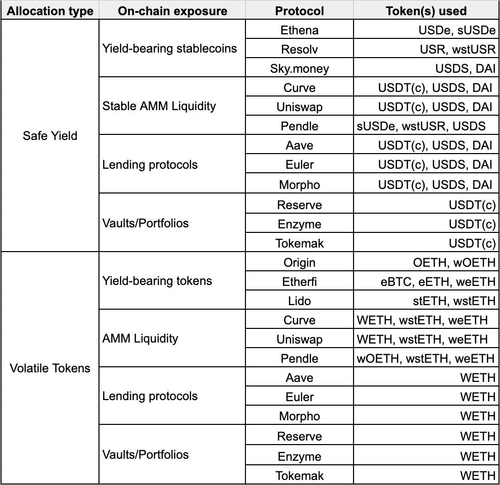 Users or funds who deploy personalised vaults may further configure protocol and asset whitelists using their own preferences. This includes flexibility in setting their own allocation weights.