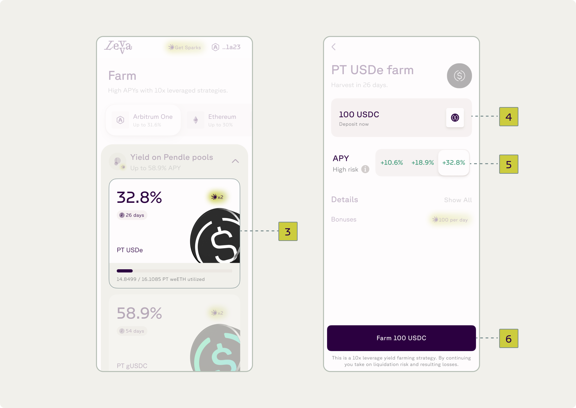 Leveraged Yield Farming involves using borrowed funds to amplify returns from yield-bearing tokens. In the Pendle protocol, these tokens (LRTs) can be split into two parts: yield (YT tokens) and principal (PT tokens). PT tokens, which behave like Zero Coupon Bonds, convert 1:1 to the underlying asset at maturity, allowing farmers to lock in yield.